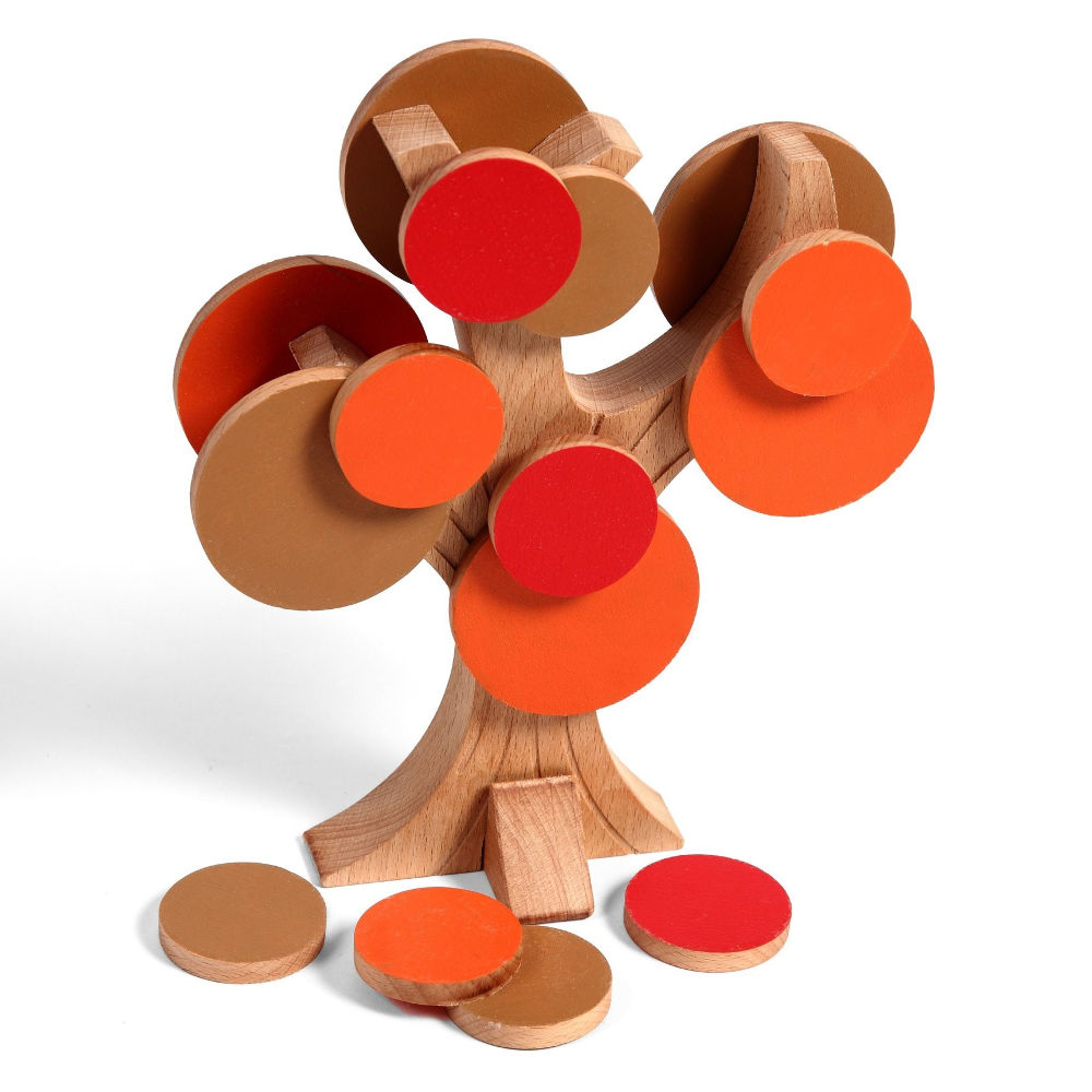 Cwic son 58 piezas de madera de haya maciza e imanes para jugar a ponerle hojas, flores, frutos, nieve y hasta hojas secas en cada estación. Viene en una caja de madera maciza tallada en una sola pieza que representa una maceta. Un ejemplo de sostenibilidad aplicada al sector del juguete y el entretenimiento.